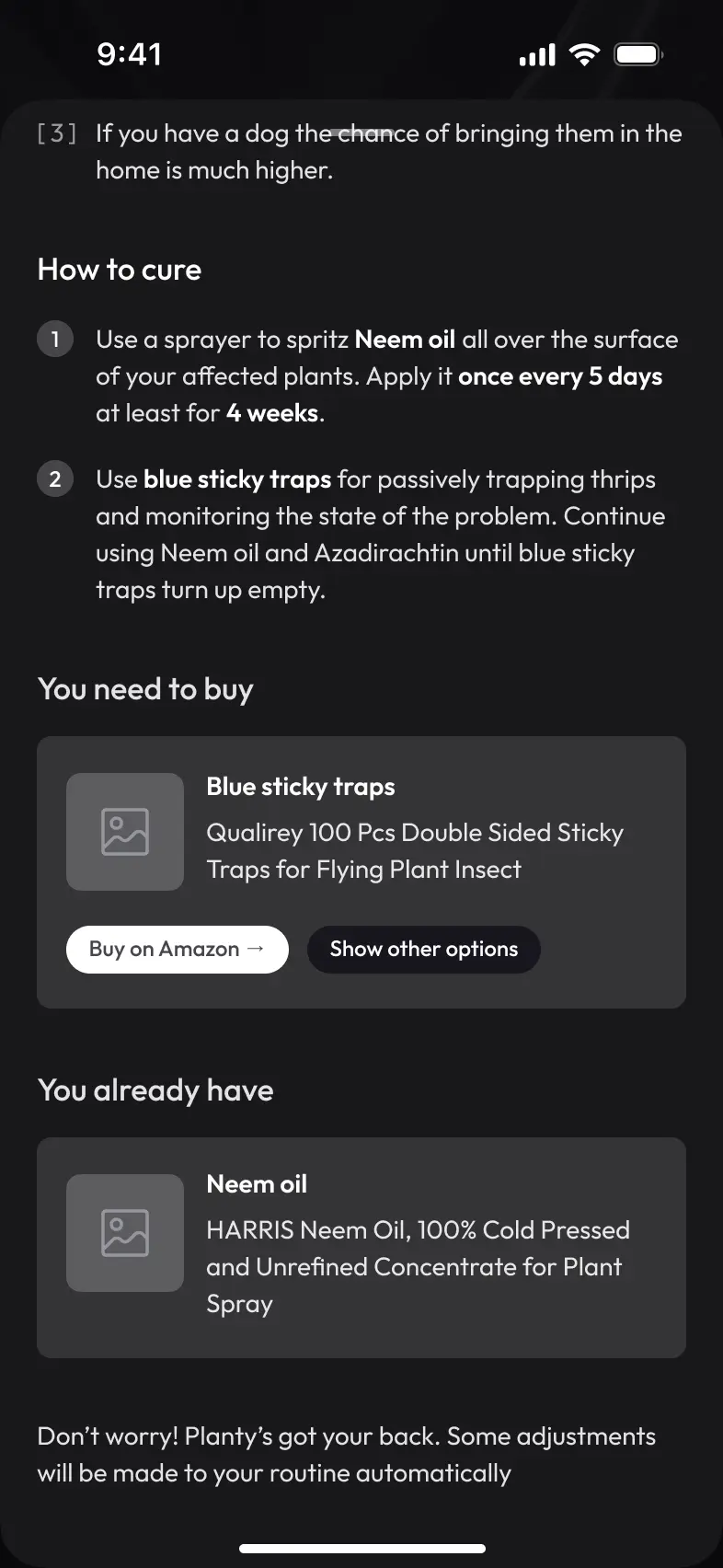 Some users also have gardens with outdoor plants. Consider adding outdoor plants and their care products to our database.