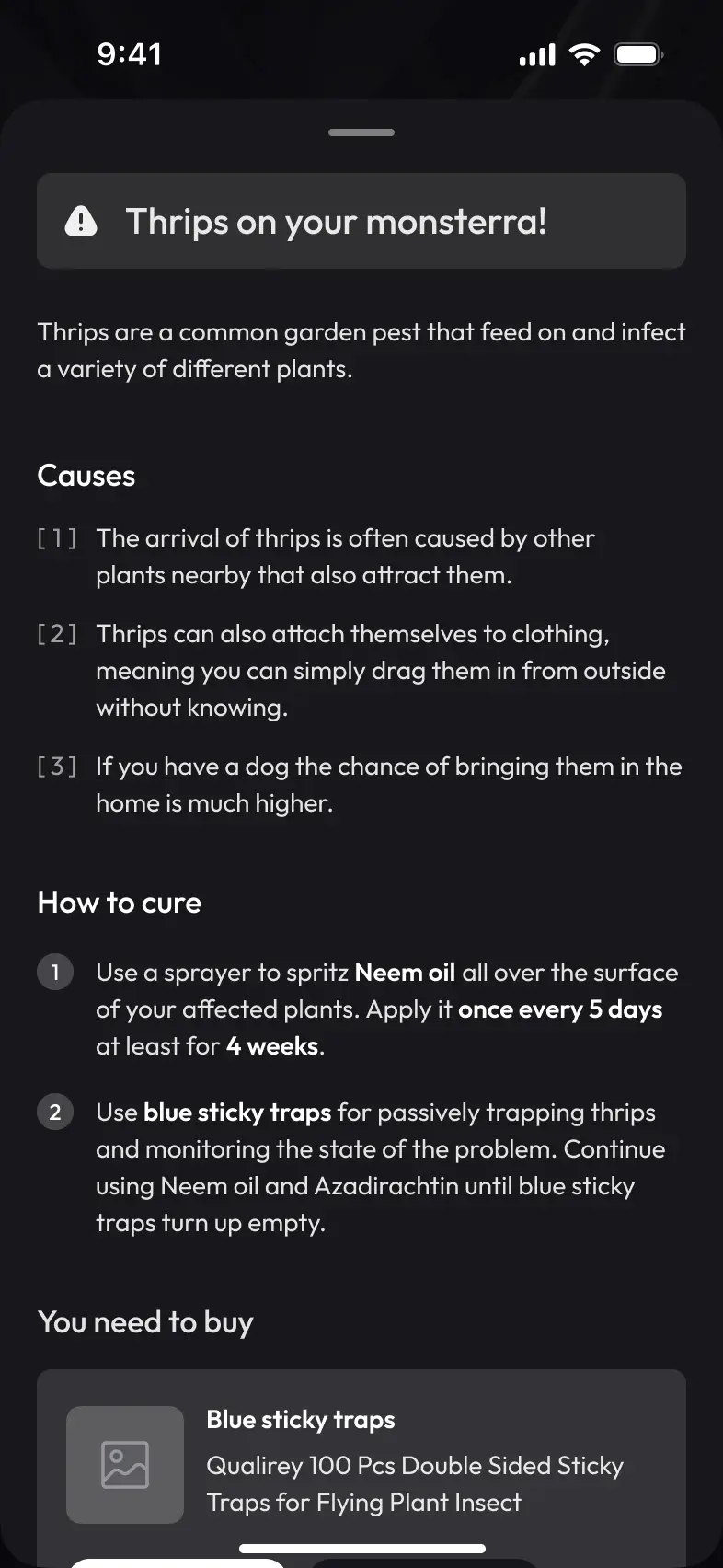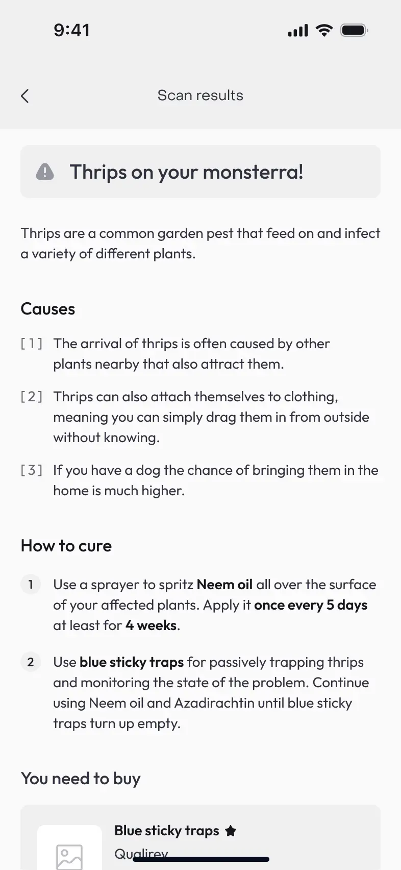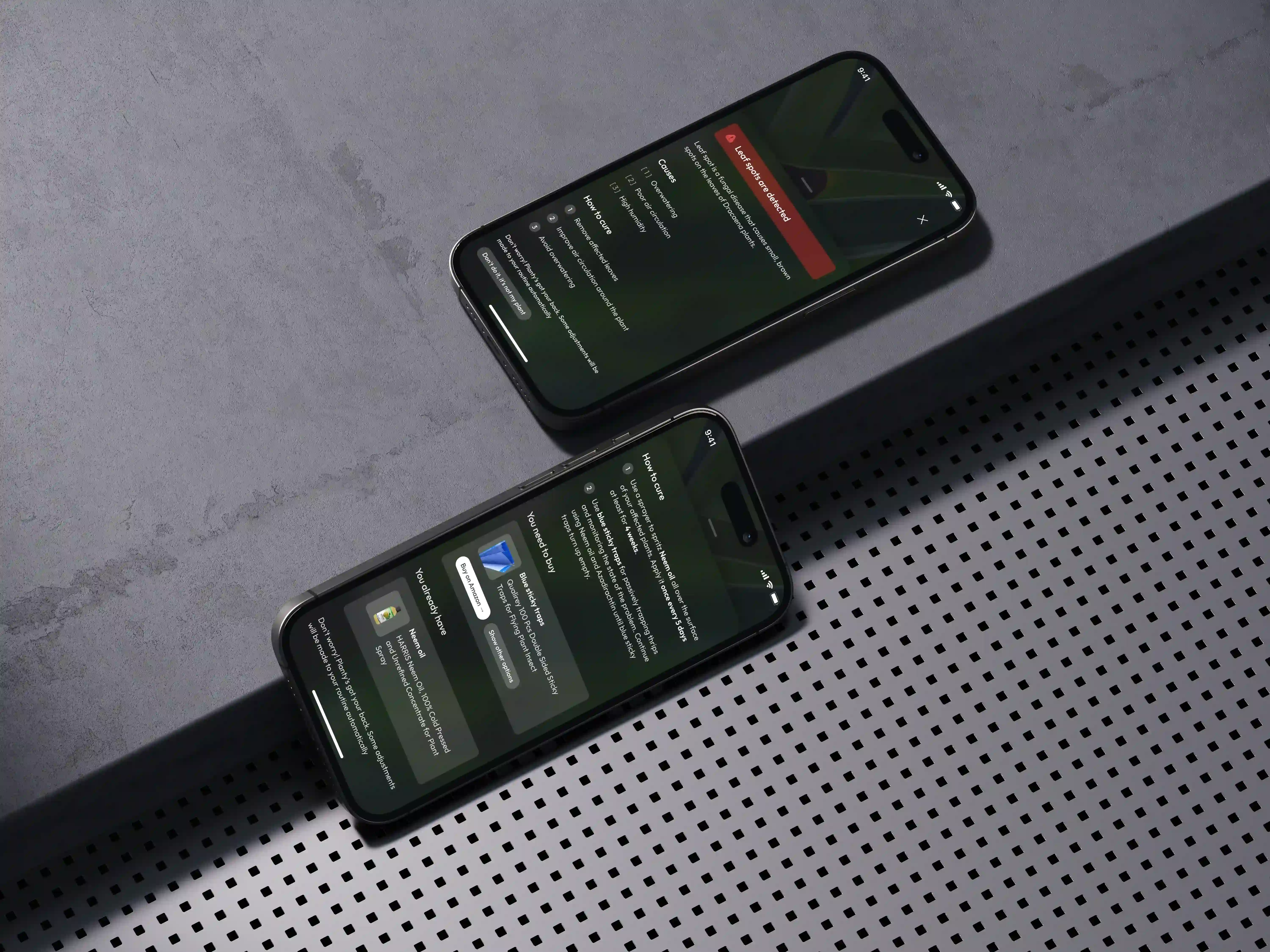 When testing the plant‑scanning flow, I focused on making the whole experience faster and more intuitive. Users wanted to see everything they needed in one place – so I brought the diagnosis and treatment details together on a single screen, eliminating extra taps and keeping the process simple.