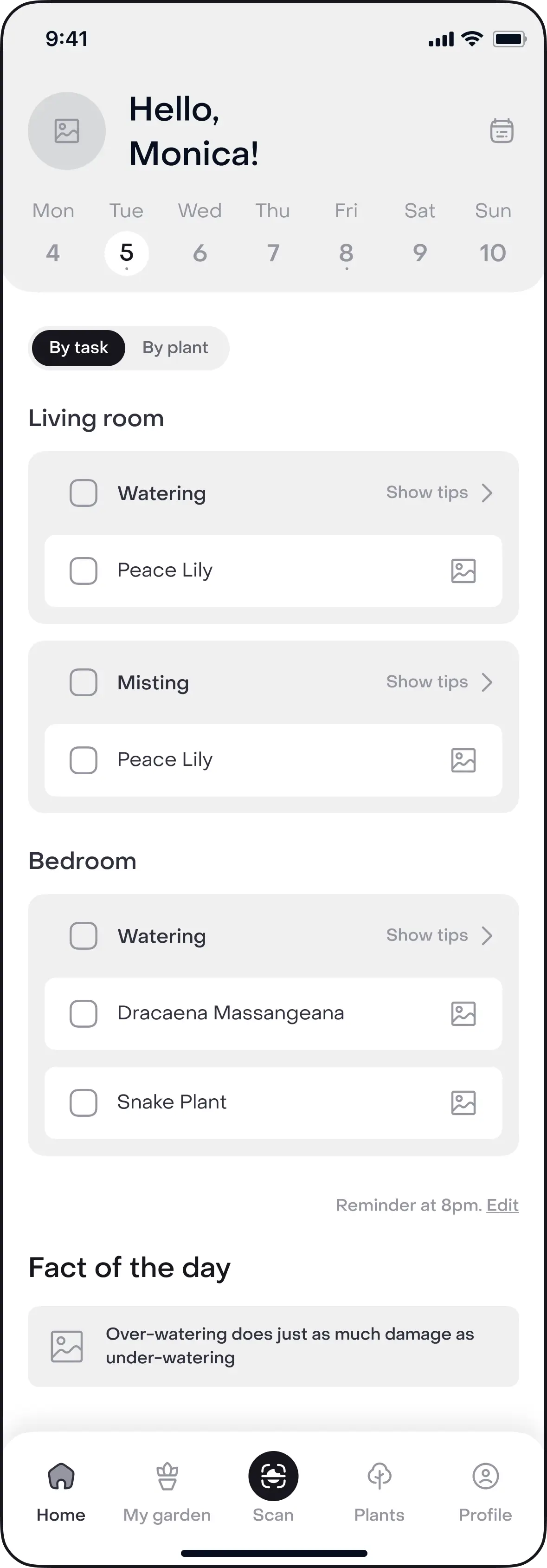 Lets users choose how they prefer to work – completing all tasks for one plant or checking off one task for every plant first.